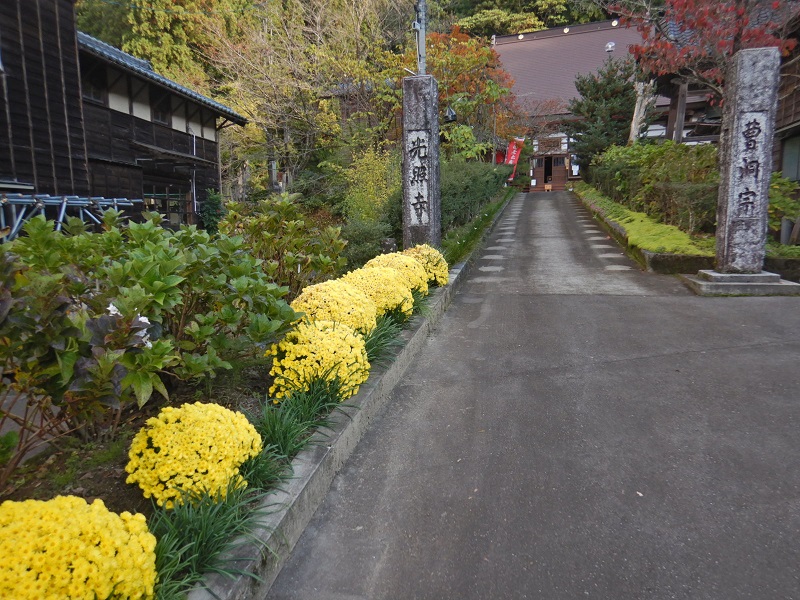 写真:門柱前のザル菊。花期が長くてまだ当分楽しめます。